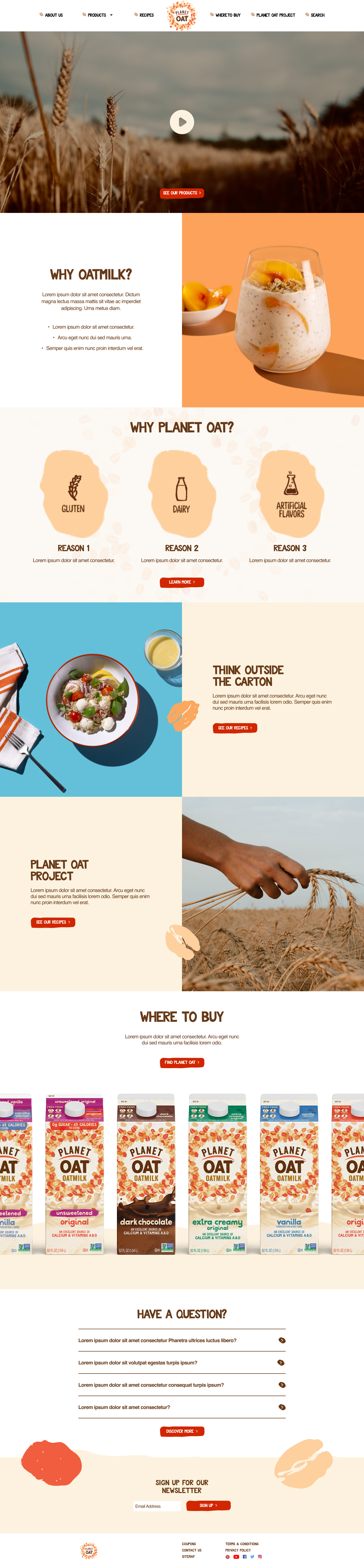 I was tasked with designing various page layouts for the Planet Oat website, engaging in close collaboration with cross-functional teams comprising copywriters, designers, content strategists, and art directors. Together, we carefully planned and crafted diverse web pages for the Planet Oat platform. By closely aligning with the project manager, I gained a comprehensive understanding of project requisites and objectives, thereby ensuring the timely and budget-conscious delivery of each assignment. Additionally, I skillfully curated and enhanced image assets sourced from the Planet Oat team, thoroughly sticking to their brand identity and guidelines.